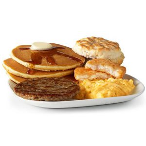 دو عدد همبرگر گوشت مخصوص گوساله ، چهار عدد تخم مرغ نیمرو شده ، نان اسلایدر ، نان تست ، نان سیر